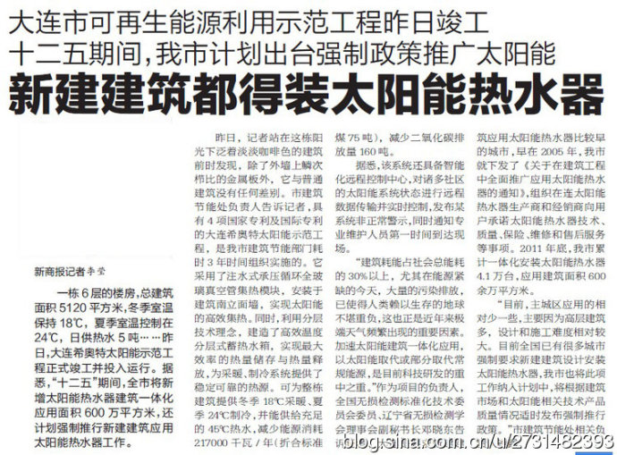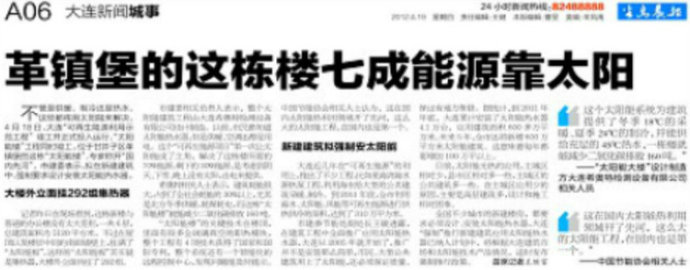 4家媒體好評大連希奧特陽光能源示范工程(圖)