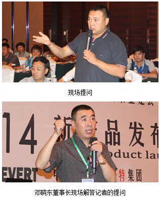 [ 鄧曉東董事長介紹“多腔集成太陽能熱水器“產品 ]