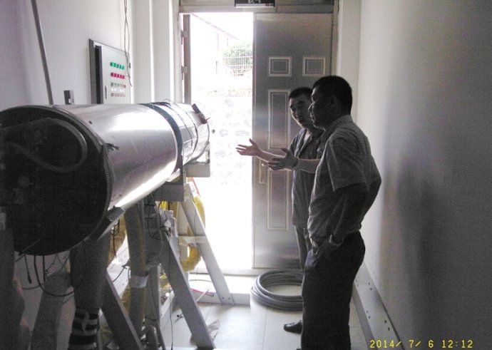 來賓參觀大連希奧特新型分體壁掛太陽能熱水器的檢測現場