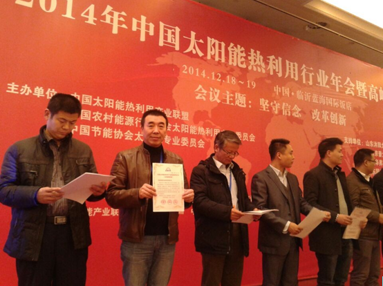 大會上舉行了中國太陽能熱利用產業聯盟推薦證書頒發儀式。大連希奧特陽光能源科技有限公司生產的“Z-RG/0.6-WF-1.1/12-47(SVTSUN)”真空管型太陽能集熱器,獲得中國太陽能熱利用產業聯盟太陽能集熱器推薦證書。