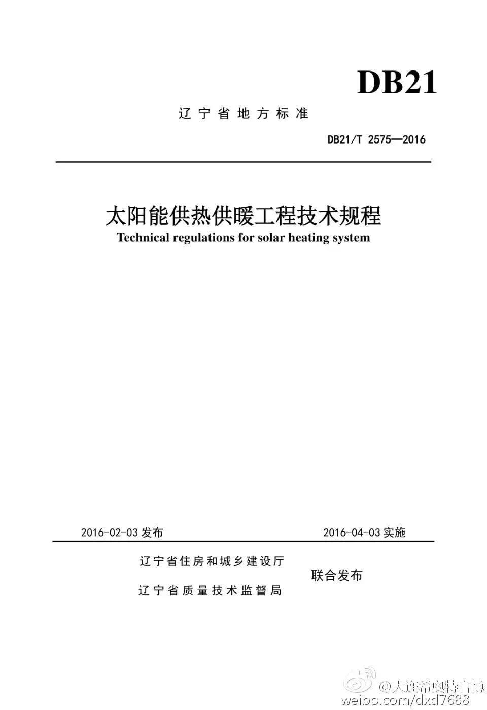 由大連希奧特陽光能源科技有限公司主編的《遼寧省太陽能供熱供暖工程技術規程》,經遼寧省住房和城鄉建設廳、遼寧省質量技術監督局審批,獲準于201623日發布,于43日貫徹實施。該《技術規程》為中國首個地方級太陽能供暖技術規程。